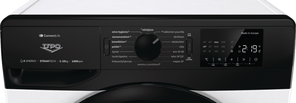 Helppokäyttöinen: pesukone vain päälle, valitse ohjelma sekä paina käynnistyspainiketta. Haluamasi lisäasetukset saat kätevästi valittua suurelta kosketusnäytöltä.