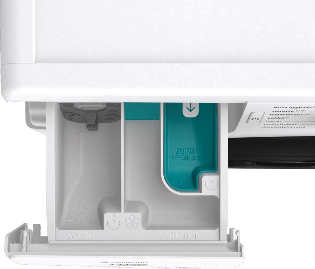 Ylimääräinen höyrykäsittely sileyttää ja raikastaa pyykin sekä tuhoaa bakteereja. Saat siis puhdasta ja raikkaan sileää pyykkiä vaivatta – huuhteluainetta ei tarvita.